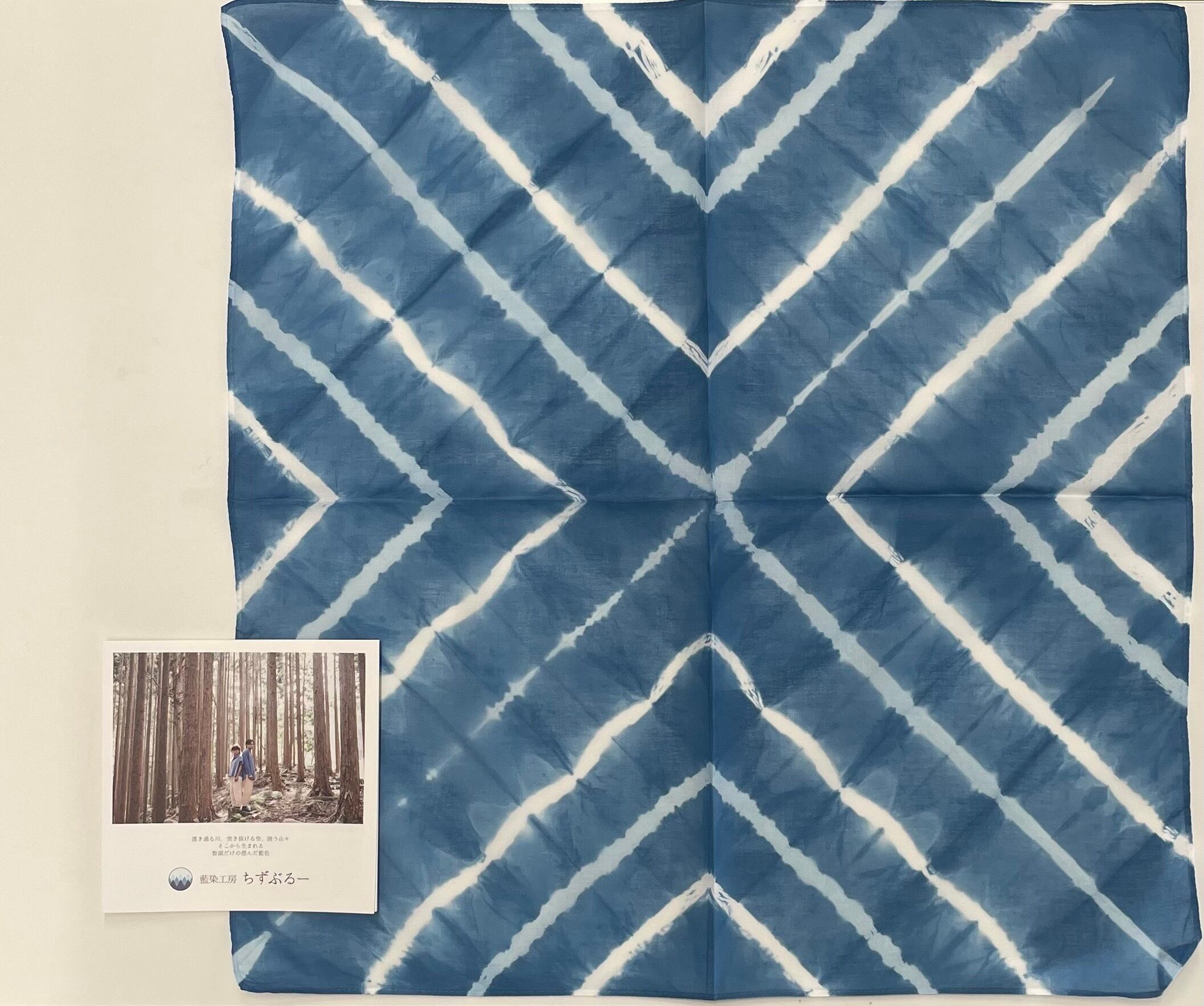 鳥取県智頭町の藍染工房ちづブルーさんで作られた手作りのハンカチ☆わんこやニャンコにとてもよく似合うバンダナです♪